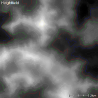 Cliffs and terraces (DM parameter)The 'cliffs and terraces' slider in the design map parameters wizard determines the number and strength of the cliff/terrace overlays applied to your heightmap. This is demonstrated below, where where I've made terrain with cliffs and terraces settings from 0% up to 100%: