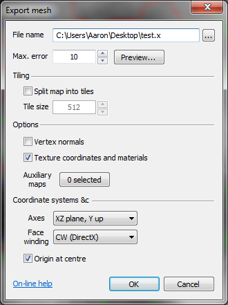 How to export tilesTo make use of the new mesh exporter, select the new 'File→Export→Export optimised mesh' menu option, which will open the new Export mesh window shown below:
