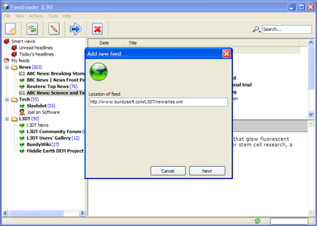 RSS in FeedReaderFeedReader can be downloaded from http://www.feedreader.com/. Subscribing to a feed using Feedreader is pretty straightforward: