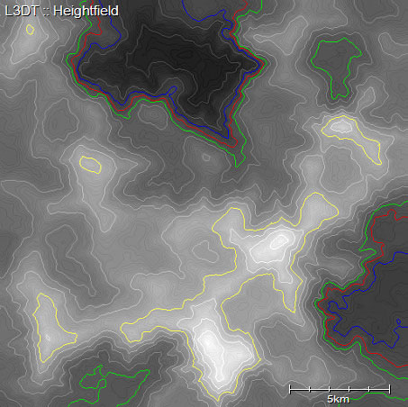 Surprise! L3DT 2.3d is availableSome time late last night I made a few small but potentially rather useful additions to L3DT, so rather than hold back I thought I'd pop-out an unexpected and unscheduled update. If you're feeling impatient, you can find a brief list of changes on the release history page; otherwise, you may benefit from the somewhat more lengthy descriptions below. As usual, the installers are on their respective downloads pages. Heightfield previewI've added the 'Operations→Heightfield→Generate preview' option, which makes a quick low-detail version of the heightfield. It's 1/4th the resolution, around 4× faster, but still looks pretty-much the same (compare regular and preview). The idea is that this feature will make it easier to iteratively design a heightfield, as you can rapidly (and semi-reliably) assess the impact of your changes on the final heightfield. There is likely to be much tweaking and re-jigging of this feature in the next few releases, so please feel free to send your feedback my way (preferrably via the users' forum). File format stuff Though had previously avowed not to add any more file format support to L3DT until I had finished the software development kit, I've acquiesced to popular demands and made the following additions: